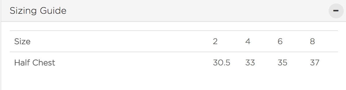 Half Chest (cm) 30.5 33 35 37